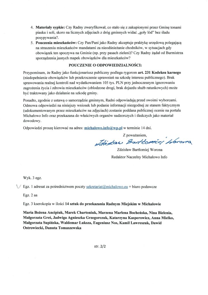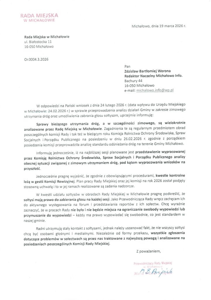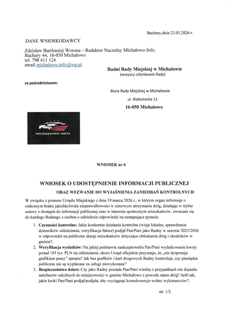 Dziś Redakcja Michałowo Info skierowała oficjalne wezwanie do wszystkich Radnych Rady Miejskiej w Michałowie!